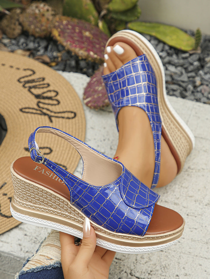 - šNon-Slip Rubber OutsolećWedge sandals for women have a durable non-slip rubber sole, soft synthetic upper and breathable lining.