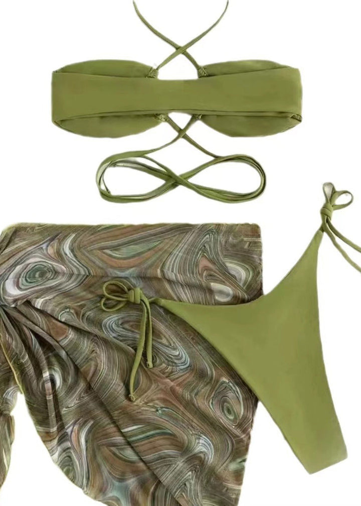 European And American Sexy Green Backless Bikini Swimwear Set