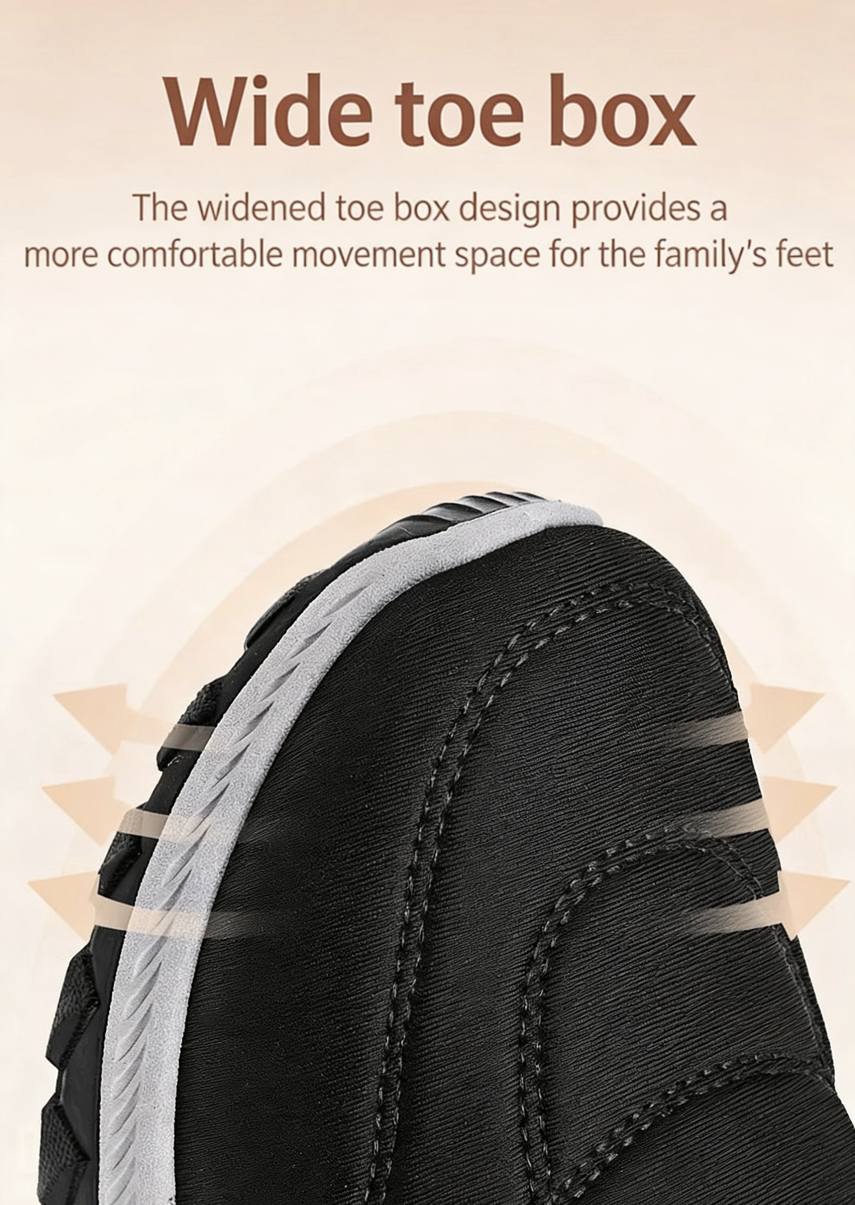 Built with durable rubber and a multi-angle tread, the sole provides stable traction on wet and uneven surfaces while allowing natural, flexible movement.