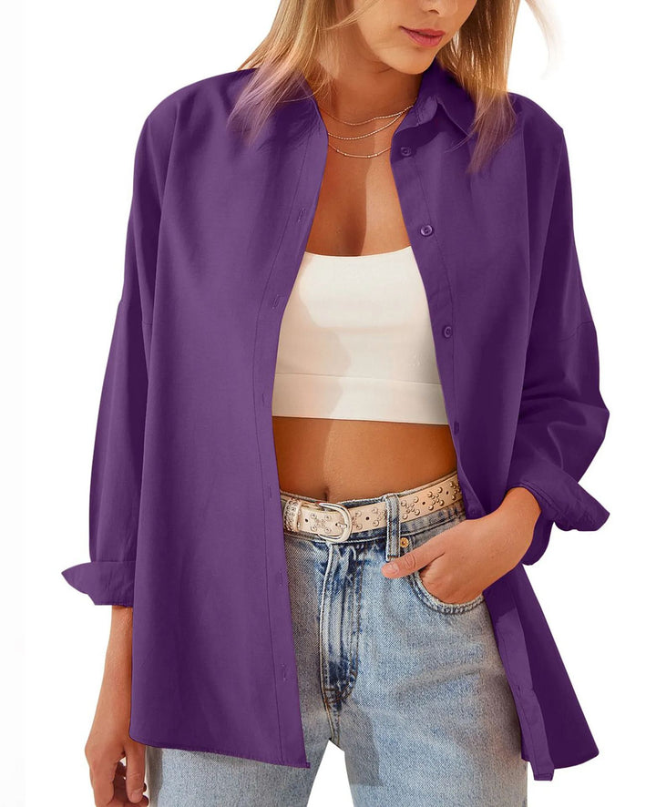 Women's Loose Casual Long Sleeve Shirt Cardigan